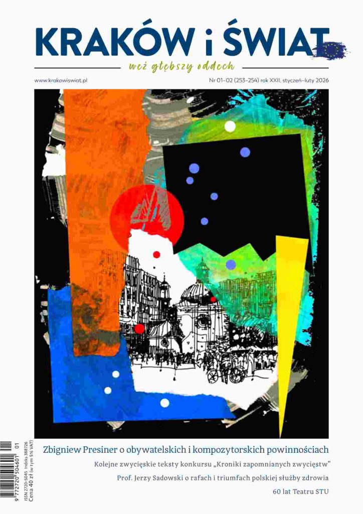 Ten numer „Krakowa i Świata” układa się w opowieść o miejscach, ludziach i pasjach, które przez lata tworzyły – i wciąż tworzą – intelektualny i emocjonalny pejzaż Krakowa. Jest to numer gęsty od portretów, wspomnień i rozmów, w których sztuka, muzyka, medycyna i miasto spotykają się w jednym rytmie.