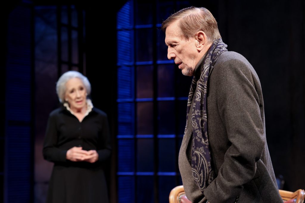 Niania (znakomita Maja Komorowska!) pojawia się na scenie dwa razy. Na początku spektaklu omawia z Henrykiem szczegóły podjęcia dawnego przyjaciela. Henryk chciałby, aby salon wyglądał identycznie, jak przed laty, podczas ostatniej wizyty Konrada. Kolejny raz – w finale, już po wyjeździe Konrada… Odczuwamy jej zatroskanie, może nawet obawy o to, do czego podczas spotkania mogłoby dojść. Wszak Henryk od samego początku nie ukrywa emocji, nawet wzburzenia. W pewnym momencie, oczekując na gościa, podchodzi do kredensu, odsuwa szufladę, z której dobywa pistolet… Waży go w dłoni i odkłada na miejsce. Obecność Niani czujemy podświadomie przez cały czas spektaklu. Co chwilę łapię się na pojawiającej się myśli – kiedy wejdzie… Albo, dlaczego jej nie ma… Na scenie panuje pełna kultura i dostojeństwo, pomimo napiętej atmosfery nie pada ani jedno wulgarne słowo. Myślę, że zwolennicy tradycyjnie realizowanych spektakli teatralnych wychodzili usatysfakcjonowani. Dodatkowo obecność na scenie tak znamienitych osobowości aktorskich elektryzowała widzów, czemu dali świadectwo długimi, niekończącymi się oklaskami.